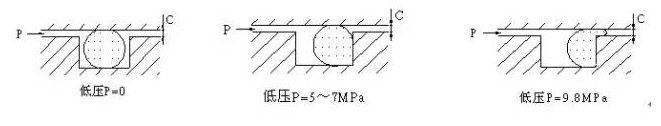 O形橡膠密封圈一般是由壓縮所產生的回彈來進行密封的,但隨著壓力的增加,其被擠入密封濁隙而產生形狀變化,如圖4-1