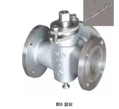裂紋的存在減少了閥門承載截面積,而且裂紋端部形成尖銳的缺口,應力高度集中,容易擴展導致破壞。通常明顯可見的裂紋是不允許的,無論其位置和大小均判定為不合格。發現裂紋后可以用砂輪打磨,若確認裂紋已經完全消除,且未損傷閥門表面,厚度減薄又不明顯,可以判定為合格,否則按退貨處理。