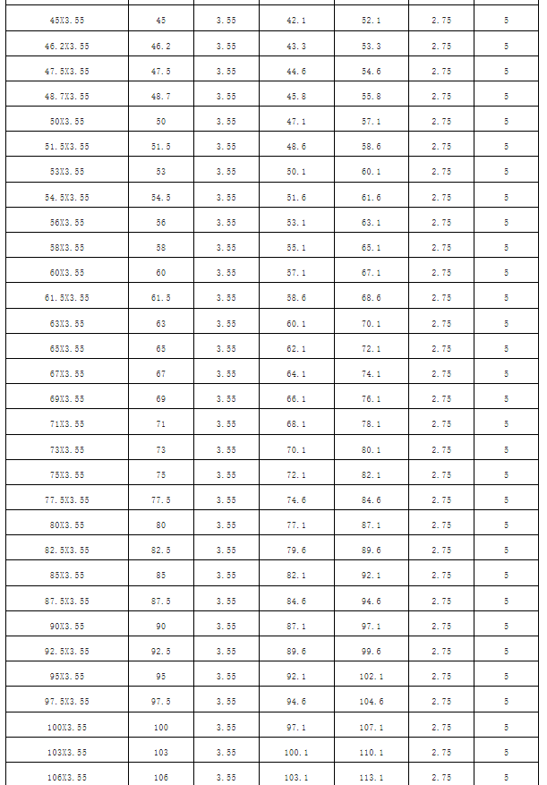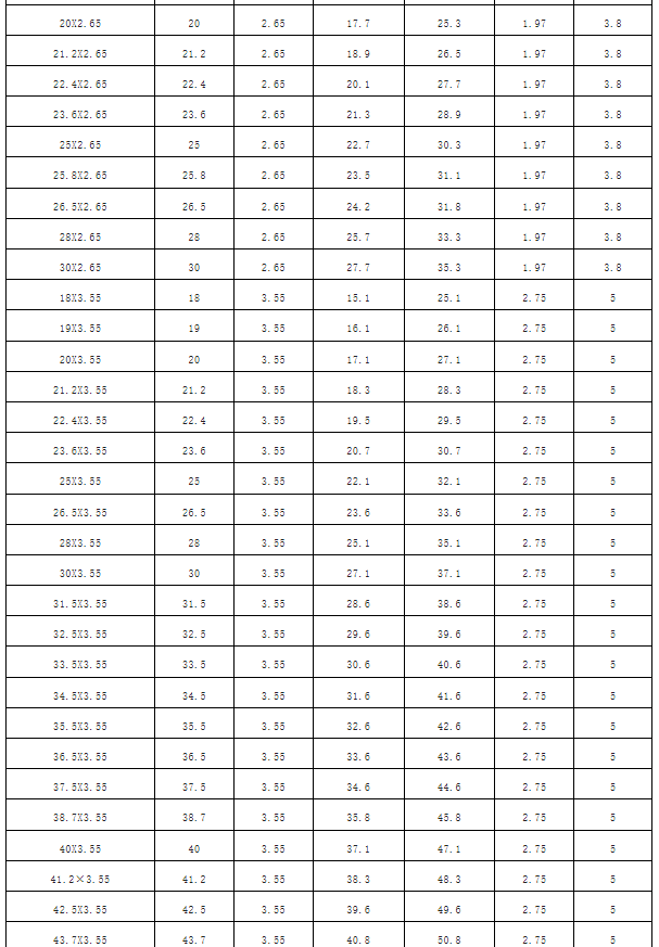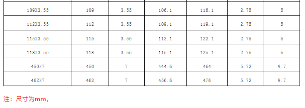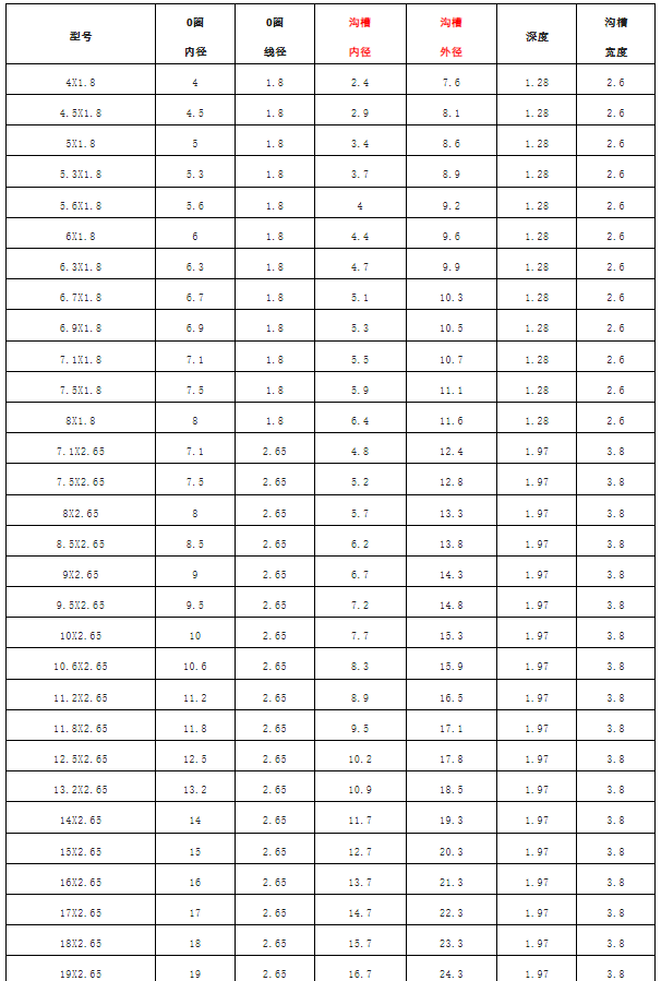 泵閥設備常用O型密封圈尺寸參照表