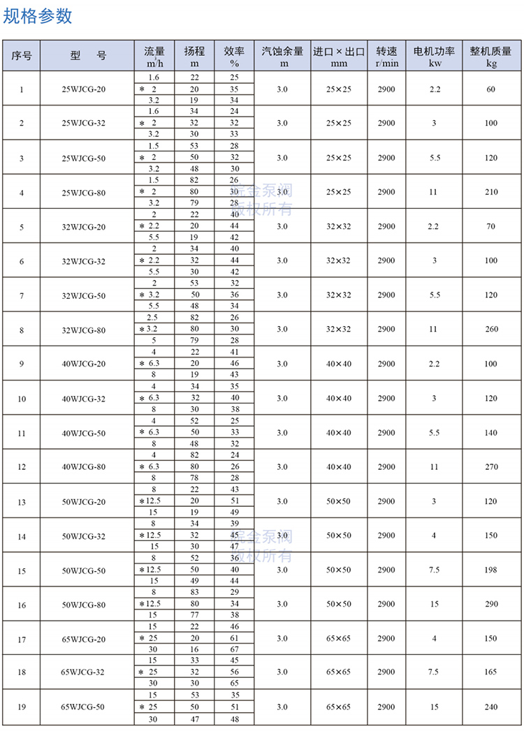 皖金泵閥不銹鋼磁力管道泵主要參數: