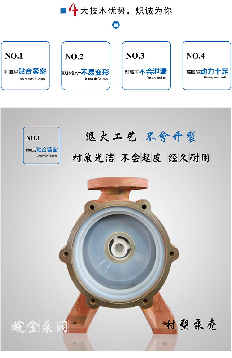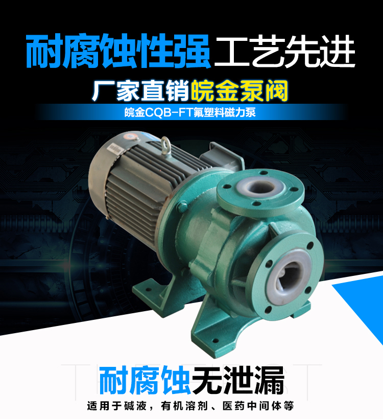 氟塑料磁力泵又稱其為氟塑料磁力離心泵、氟塑料磁力驅(qū)動泵、耐腐蝕磁力化工泵,CQB-FT襯塑磁力泵是我公司氟塑料磁力泵中的全新升級款型。氟塑料磁力泵另有:CQB-F經(jīng)典型、CQB-FA長支架型、IMD后拉式重型。