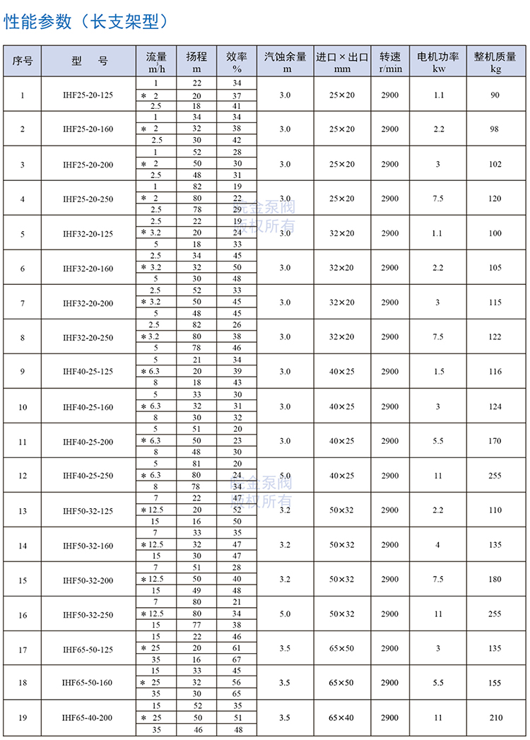 氟塑料離心泵又稱其為塑料離心泵、襯氟離心泵、耐腐蝕離心泵,IHF-L氟塑料離心泵長支架型和短支架型。