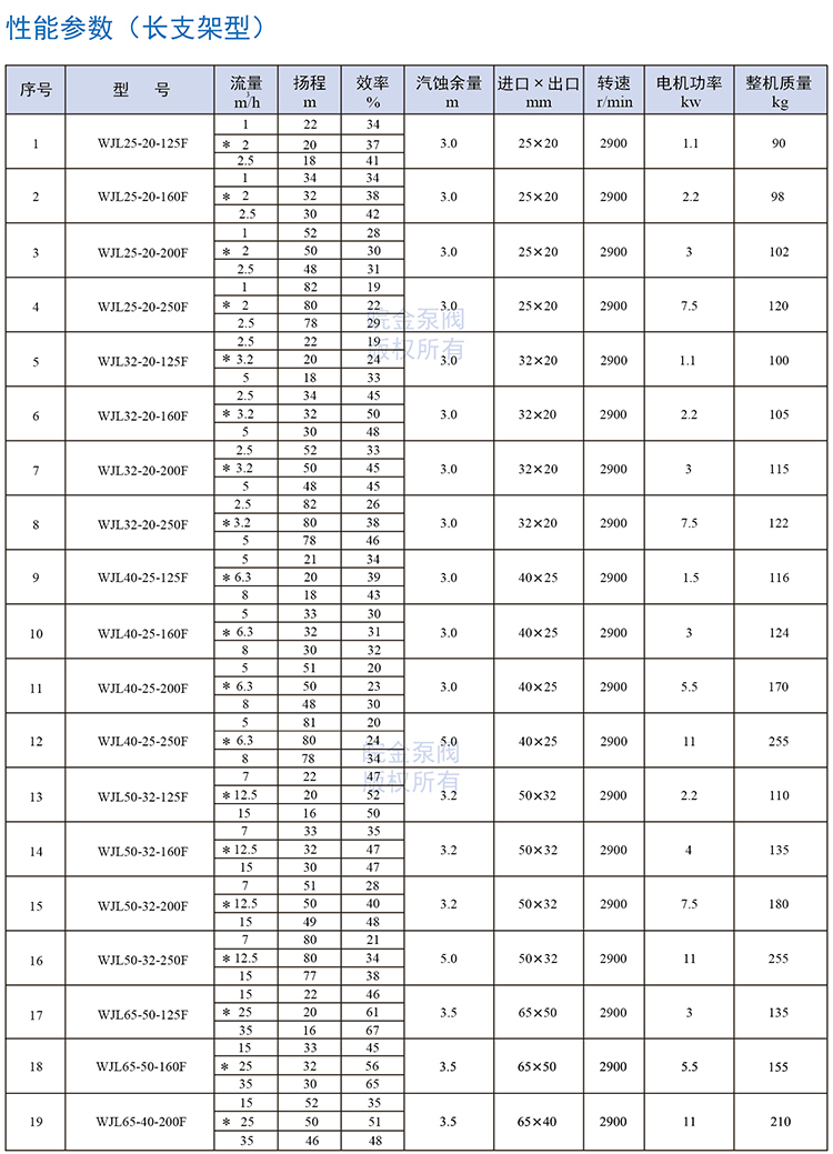 皖金泵閥襯氟離心泵主要參數: