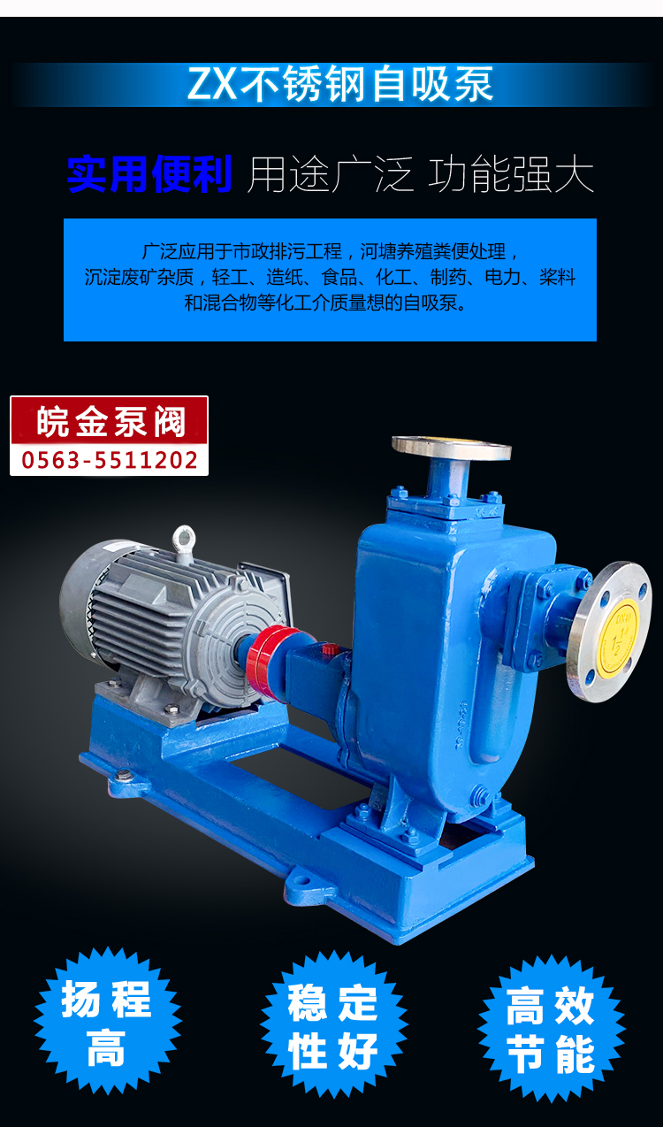 不銹鋼離心自吸泵又稱其為金屬自吸泵、離心自吸泵、耐腐蝕自吸泵,ZX不銹鋼離心自吸泵沒有逆止閥,結構簡單,運行可靠,排量大,性能好。特點是無需安裝底閥,內部結構簡單,適用于環保、消防、制藥、化工、電力、印染、采礦、電鍍、酸洗、造紙等行業。
